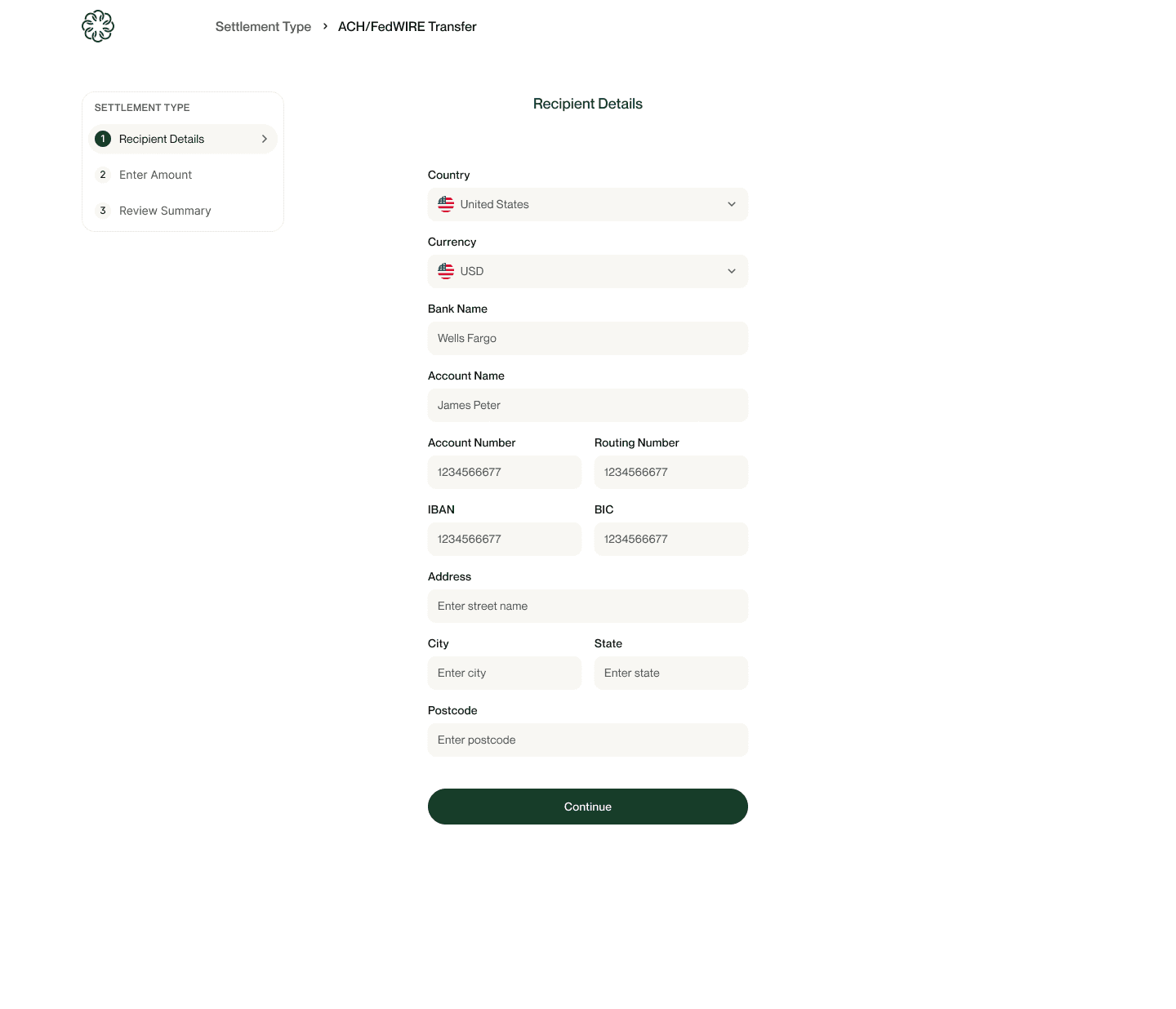 Dynamic Virtual Account: Upon confirmation, the system generates a one-time bank account number for the user to transfer funds to (simulating a standard bank transfer).