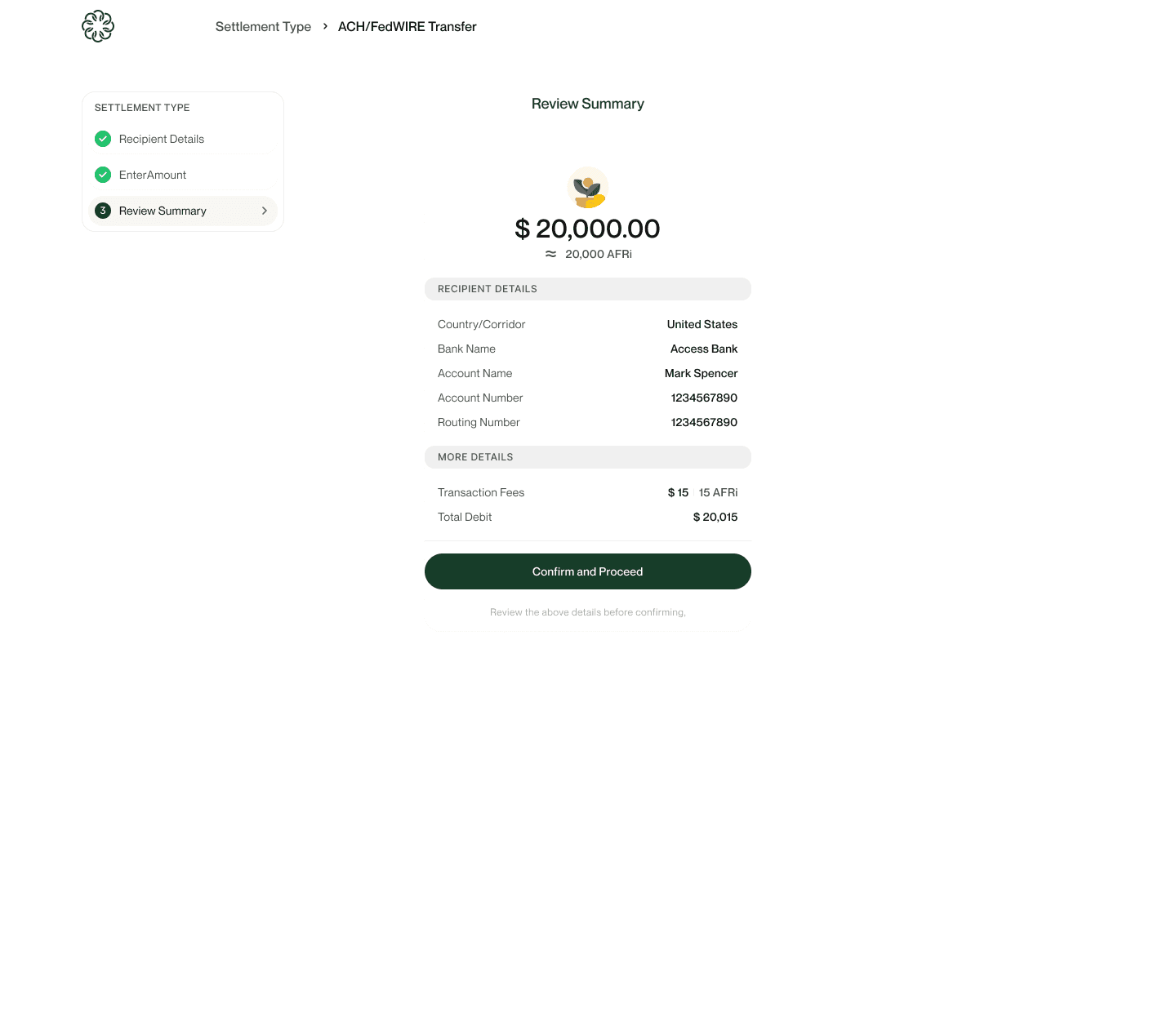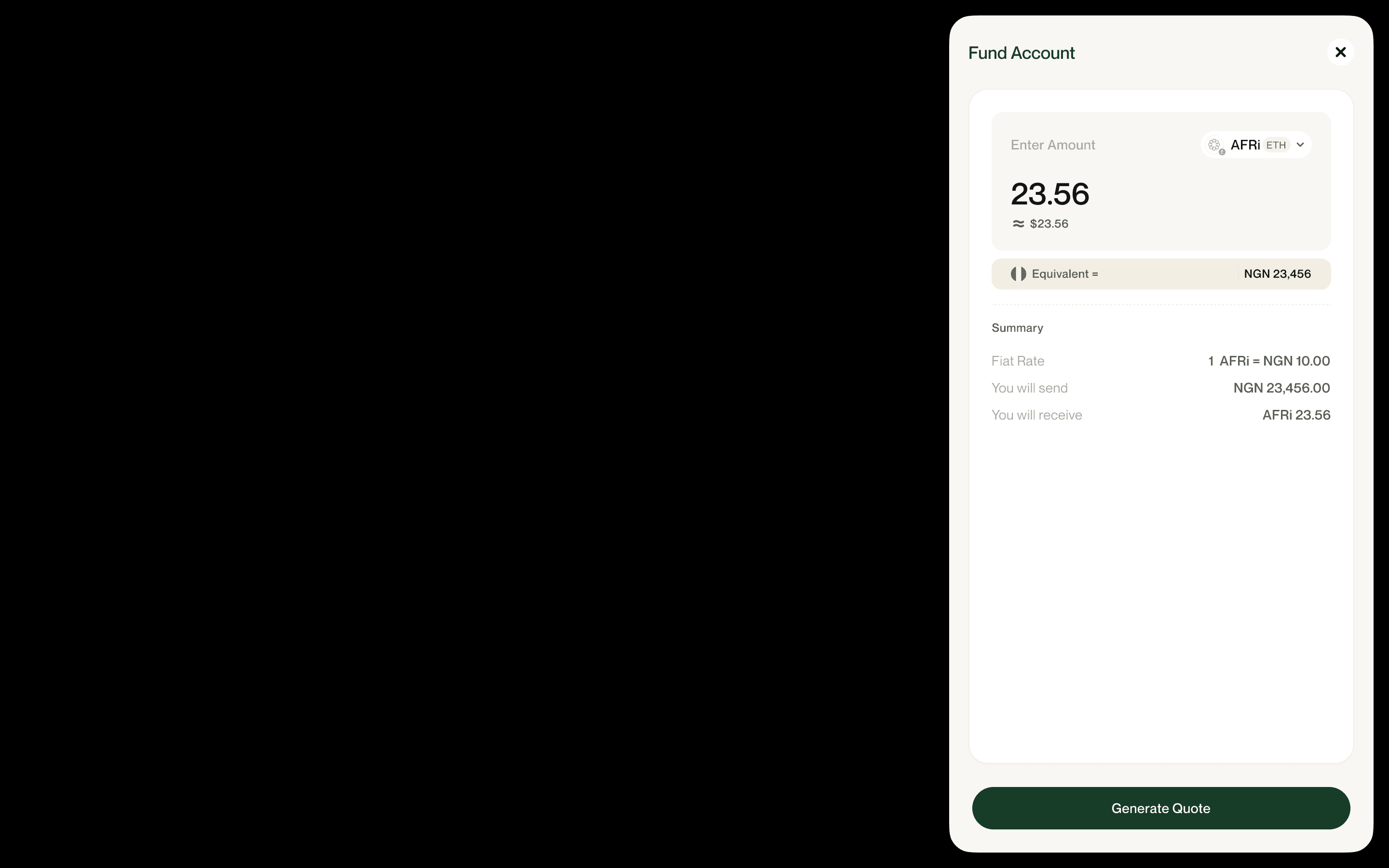 System auto-calculates the AFRI token equivalent based on live rates.