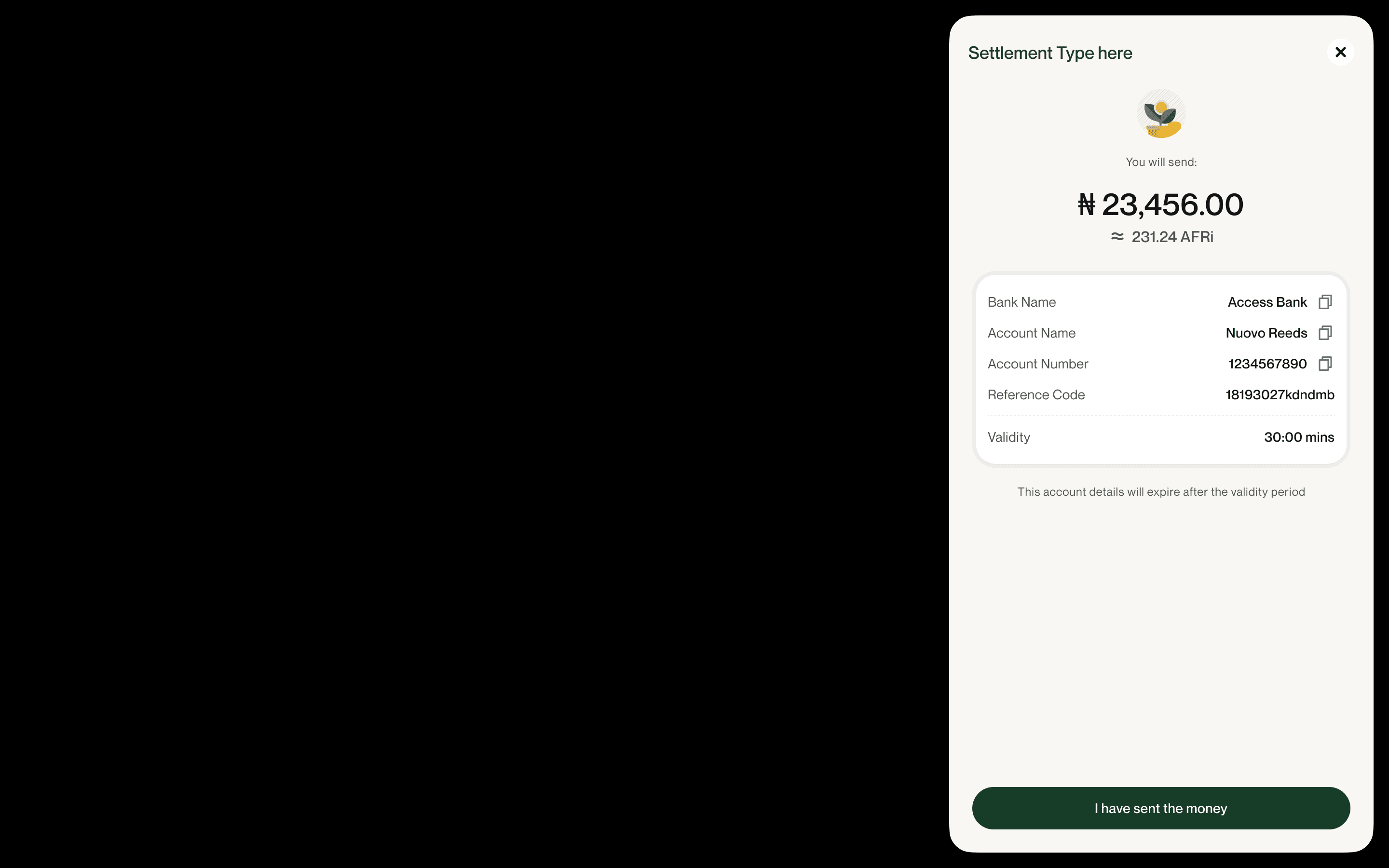 User enters amount in Fiat (e.g., NGN 5,000,000).