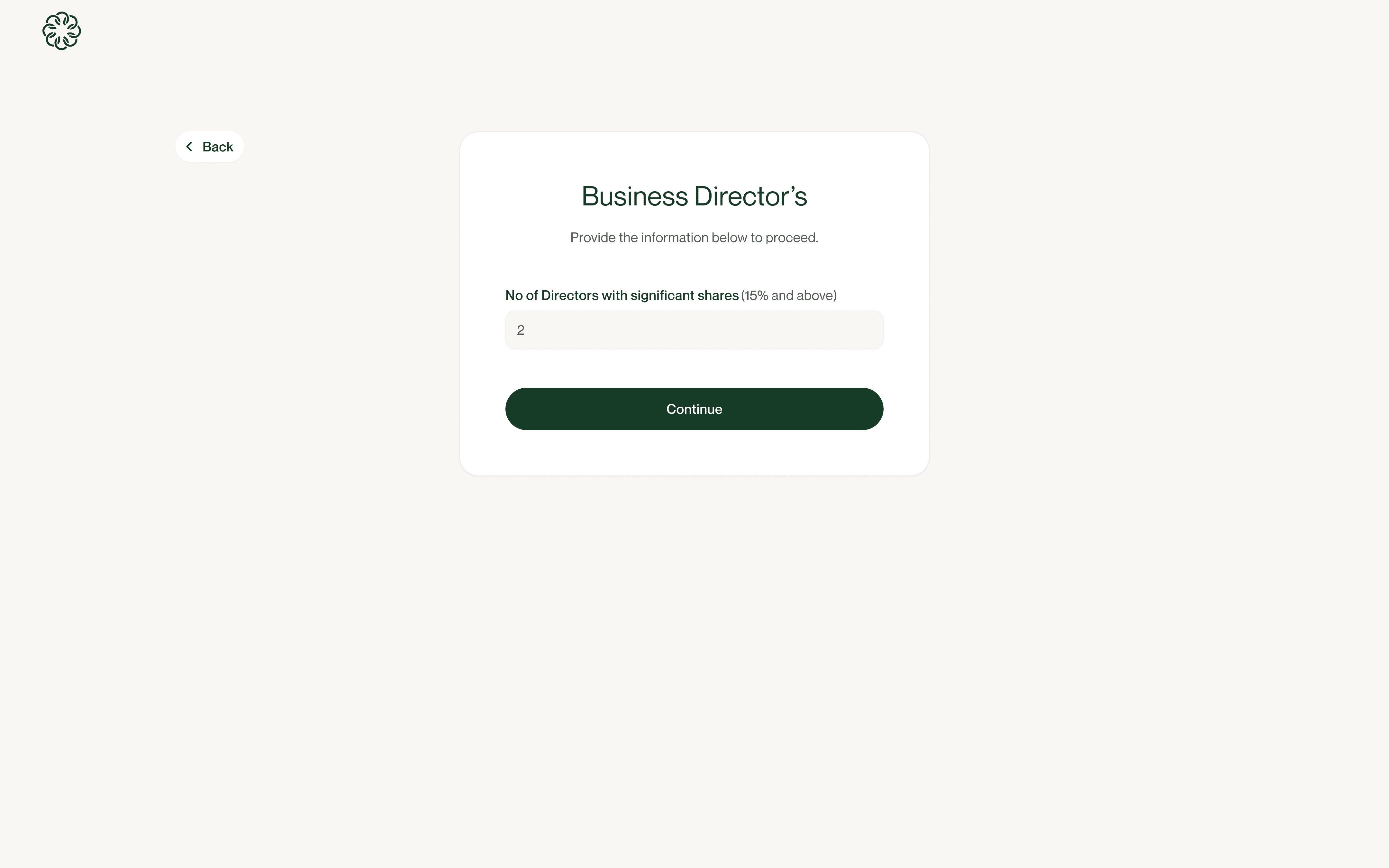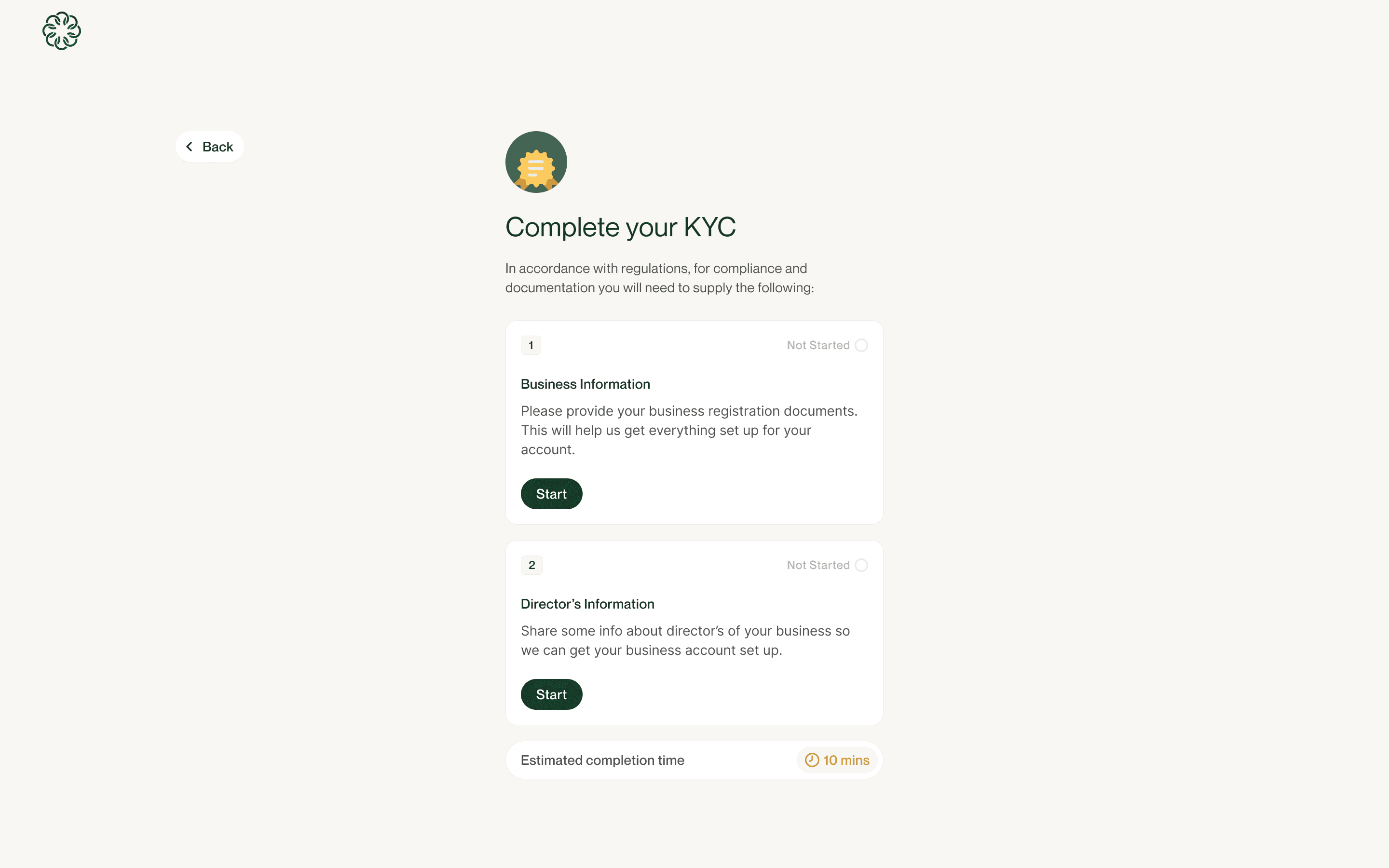 UI Solution: A progressive stepper UI was utilized to break KYC into 2 major steps: Business Information -> Director's Information