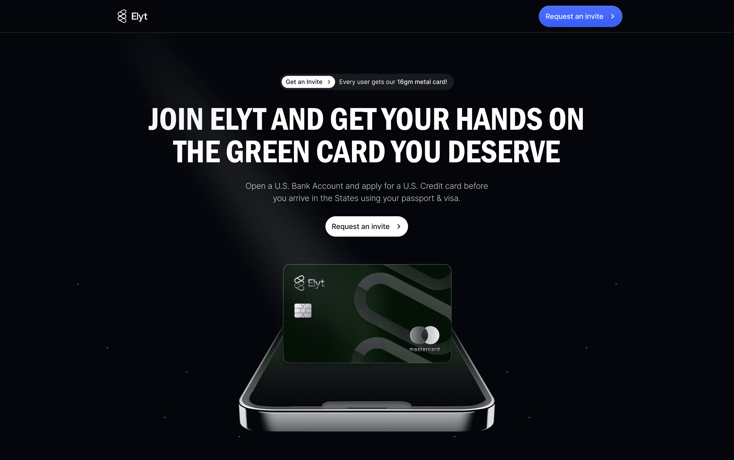 I designed a mobile app and landing page for Elyt. A cross-border Fintech that helps International Students prepare for their financial life in the U.S. by equipping them with right financial tools and educating them on financial literacy, in turn giving them a chance to start their life on an equal footing. The goal was to create a platform that instantly connects with students, highlights key features like a US Debit card upon arrival and rewards, and drives sign-ups.