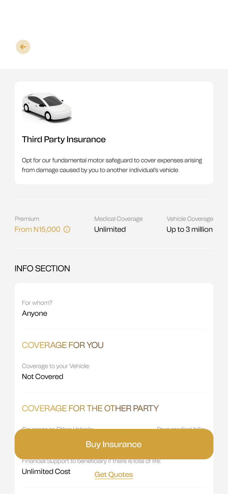 Intuitive User Interface: Designed a clean and intuitive user interface with clear navigation and visual hierarchy. Incorporated interactive elements and visual cues to guide users through the insurance process and make it more engaging
